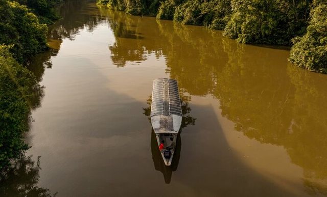 ▲ 아마존에 태양광배가 떠다니고 있다.