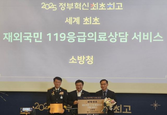 [파이낸셜경제=김영란 기자] 소방청은 2일, 행정안전부와 한국행정연구원이 공동 주관한 2025'제4회 정부혁신 최초·최고' 시상식에서 ‘재외국민 119응급의료상담서비스’가 세계 최초 혁신사례로 선정되는 영예를 안았다고 밝혔다.