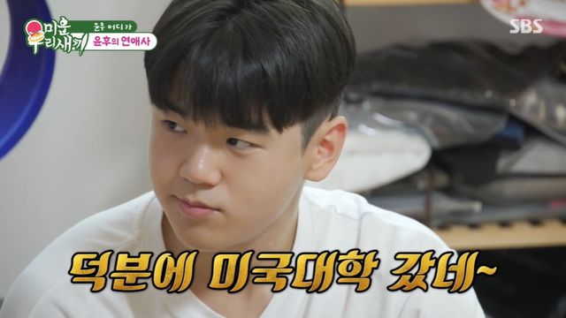 윤후는 "그때가 고등학교 1학년때 였으니까 그때부터 공부 열심히 했다"라고 이야기했고, 윤민수는 "그 아픔을 공부로 승화시켰냐. 어쩐지 네가 그때 성적이 좋더라. 그때 깜짝 놀랐지. 그래서 네가 미국으로 대학을 갔구나. 잘했다. 다 그러면서 성장하는 거야"라며 증언해 웃음을 안겼다.