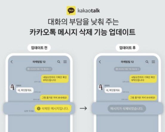카카오 관계자는 “대화의 부담감을 낮추고 원활한 소통 환경을 조성하기 위해 메시지 삭제 기능을 대폭 개선했다”고 전했다.