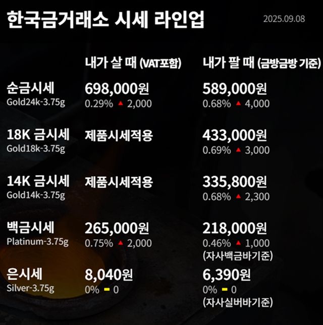 순금(24K) : 매입가 69만 8000원 / 매도가 58만 9000원
