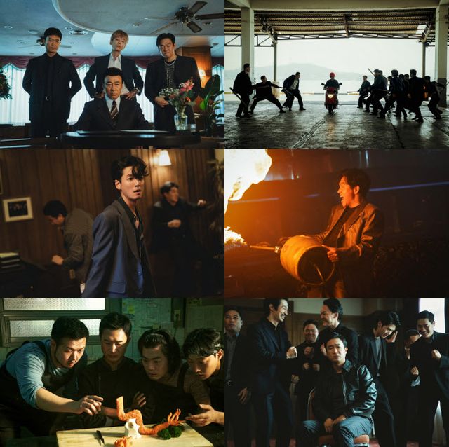 공개된 보도스틸은 빵 터지는 웃음과 화려한 액션, 코믹 케미까지 모두 사로잡은 배우들의 다채로운 시너지를 엿볼 수 있어 이목을 집중시킨다. 먼저, ‘식구파’ 보스로서 위풍당당한 카리스마를 드러내는 대수(이성민 분)와 그의 뒤를 든든하게 지키고 선 순태(조우진 분), 강표(정경호 분), 판호(박지환 분)의 모습에서 ‘식구파’의 끈끈한 유대감과 의리를 엿볼 수 있다. 이어 험상궂게 무장한 타 조직원들 사이로 빨간 배달 오토바이를 타고 서 있는 순태와 목검을 들고 진지한 표정으로 결투에 임하는 강표, 가스통을 휘둘러 불길을 내뿜는 판호까지, 일촉즉발의 긴장감과 함께 극 중에서 펼쳐질 캐릭터들의 각양각색 액션 장면을 기대케 만든다.