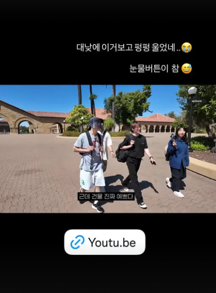 고경표가 공유한 이 영상에는 에픽하이가 미국을 방문했다가 타블로의 모교 스탠퍼드에 방문하는 장면이 담겨 있어 화제가 됐다.