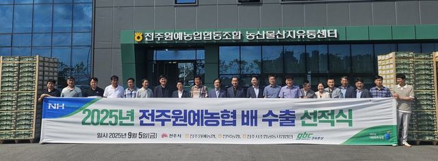 8일 뉴스 1 등에 따르면 전북농협은 전주에서 생산된 2025년산 햇배의 베트남 수출을 기념하는 선적식을 열었다고 같은 날 밝혔다.