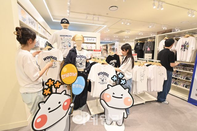 5일 경기 하남시에 따르면 이날 스타필드 하남에 개장한 스파오 매장에서 하남시 캐릭터 ‘하남이&방울이’와 스파오의 대표 캐릭터 ‘우디’가 함께 그려진 티셔츠가 오픈 기념 단독 상품으로 출시됐다. 기초자치단체 캐릭터가 국내 유명 패션 브랜드와 협업해 상품을 출시한 것은 이번이 처음이다.
