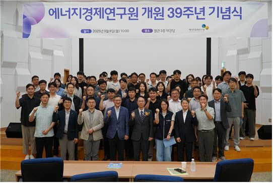 에너지경제연구원은 8일 울산시 에너지경제연구원 대강당에서 기념식을 개최했다. 행사에서는 우수연구상, 우수학술상, 공로상 등 포상과 함께 에너지경제연구원의 비전을 공유했다. 기관 발전을 위해 각자의 자리에서 헌신한 구성원의 노고를 격려하는 시간도 가졌다. 1986년 9월 1일 설립된 에너지경제연구원은 국내 유일의 에너지 정책 분야 국책연구기관이다.
