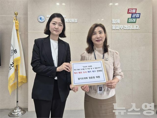 (뉴스영 이현정 기자) 경기도의회 교육기획위원회 장윤정 의원(민주, 안산3)은 8일 안산교육지원청을 방문해 학교도서관에 비치된 역사 왜곡 논란 도서의 즉각적인 폐기와 재발 방지를 위한 철저한 검증 절차 마련을 촉구하는 건의안을 전달했다.