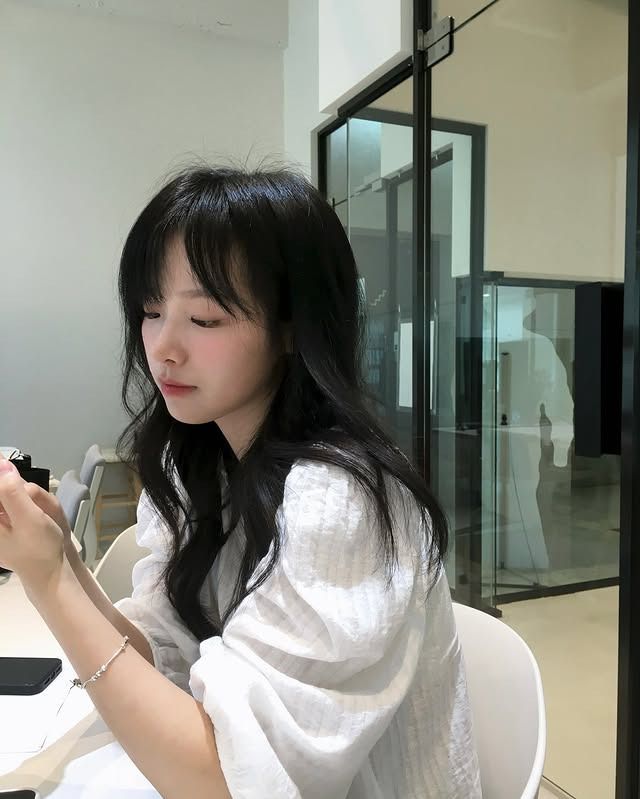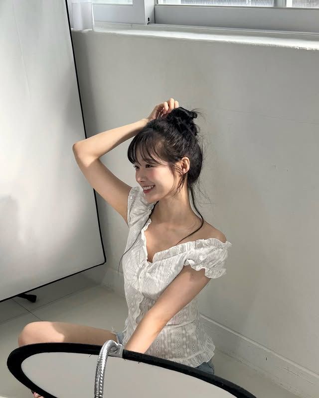시크한 오프숄더와 클래식 스트라이프의 만남, 프로미스나인 송하영의 팬 사인회 룩