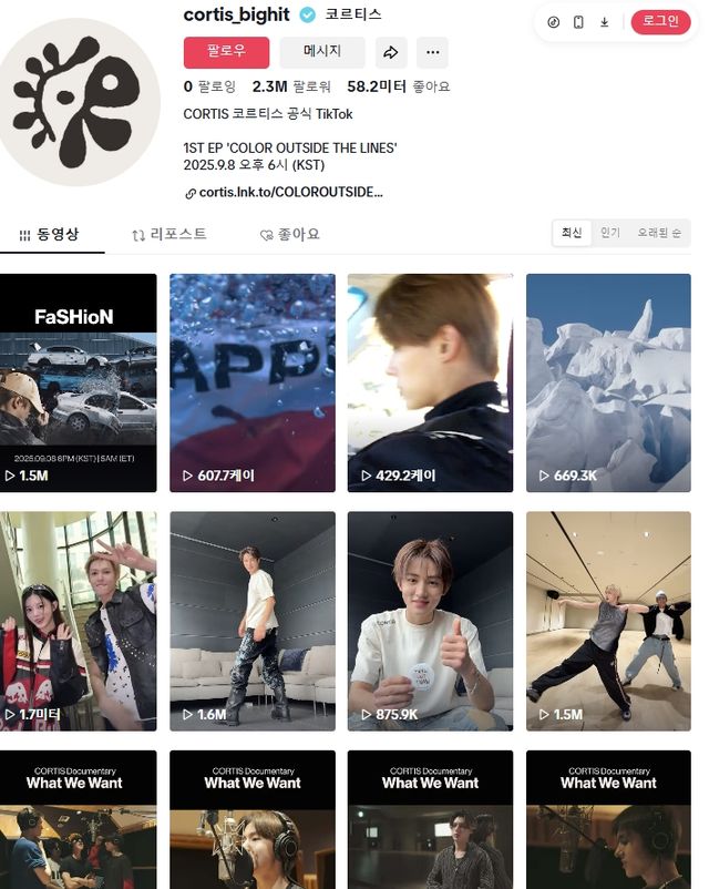 ‘고!’가 숏폼에서 강세라면, 타이틀곡 ‘왓 유 원트’는 음원 차트에서 코르티스의 존재감을 각인시키고 있다. 글로벌 스트리밍 플랫폼 유튜브 뮤직에 따르면 ‘왓 유 원트’는 발표 10일 만에 누적 재생 수 1000만 회를 돌파했다. 국내 차트에서도 가파른 상승세다. 한국 애플뮤직 ‘오늘의 톱 100’에 8월 20일 91위로 진입한 뒤 최고 19위까지 올랐고, 9월 8일 기준 21위를 기록하며 에스파 ‘더티 워크’, 데이식스 ‘꿈의 버스’, 넷플릭스 ‘케이팝 데몬 헌터스’ OST ‘유어 아이돌’과 나란히 이름을 올렸다.