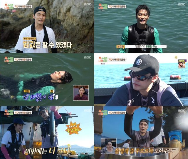 이어 수직 낙하 기술을 가동해 해초 사이를 헤집으며 돌멍게를 잡아 올린 그는 “잡는 순간 몰캉거리는 느낌이 있었다. 밥값은 할 수 있겠다”라며 뿌듯함을 드러냈다. 이후에도 끊임없이 돌멍게를 채취하며 박준형과 묘한 신경전을 벌이던 성훈은 급기야 문어잡이에 나서며 승부욕을 불태웠다.