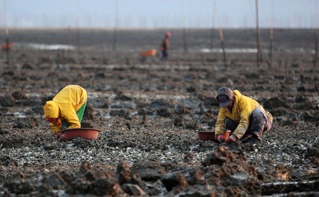 어민들이 자연산 굴을 수확하고 있다. / 전남 강진군 제공
