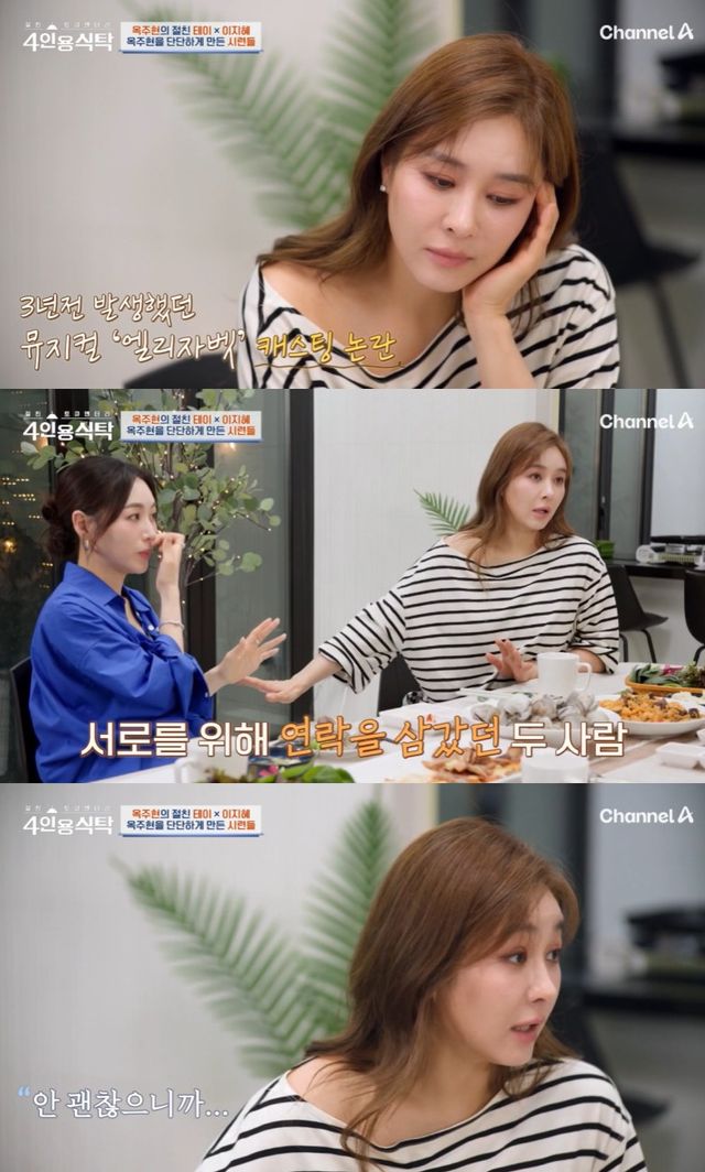 '4인용 식탁'에서 옥주현은 "정작 (이지혜와) 서로 연락을 안 했다. 안 괜찮으니까. 안 괜찮은 걸 아니까"라고 논란 후의 심경을 언급했다. 그는 "전 '엘리자벳'뿐 아니라 다른 작품도 네(이지혜)가 잘 학습해오면 잘 할 수 있다고 알려준 것이다. 작품이 뜨니까 그걸 위해서 달리자가 아니었다. '엘리자벳'만 공부한 것이 아니었다"고 해명했다.