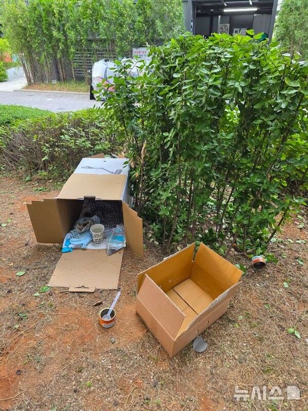 공개된 사진에는 단지 내 보행로 주변에 상자·그릇 등이 놓인 현장의 모습이 담겼다.