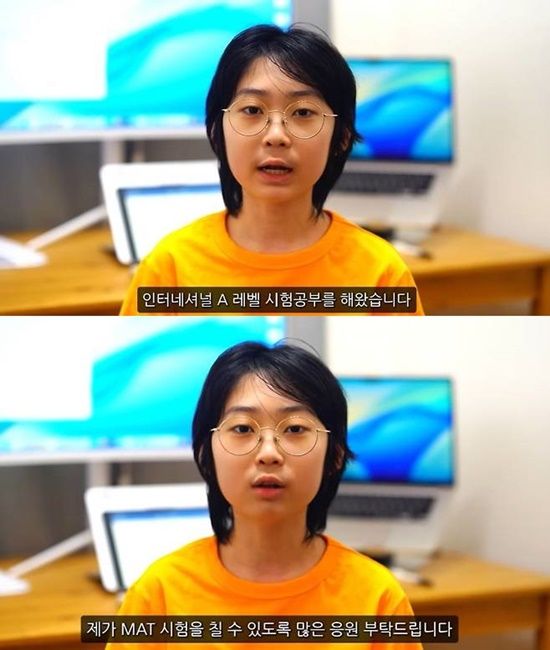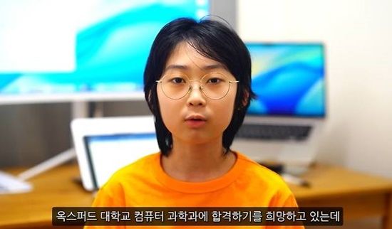 이어 "최근에 성적을 받았는데 수학 심화, 수학, 물리, 화학 네 과목에서 모두 최고 등급인 A*(에이스타)를 받았다. 옥스퍼스대학교 컴퓨터 과학과에 합격하기를 희망하고 있는데 제 성적이 상위 1% 이내에 속한다고 알고 있다"고 말했다.