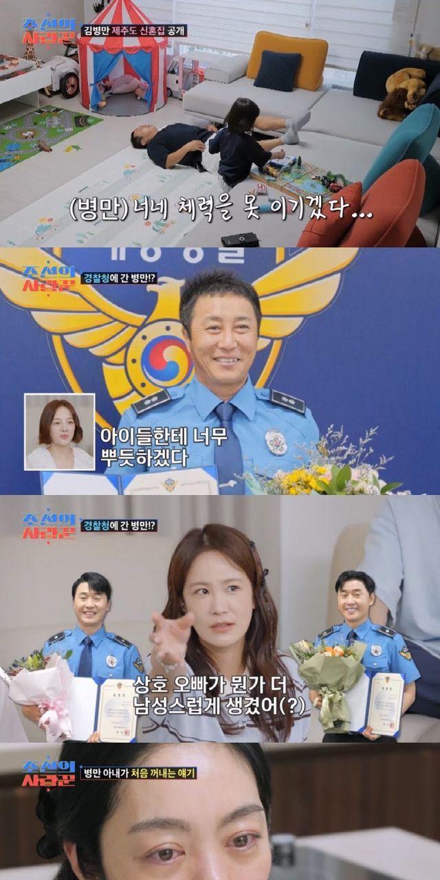 8일 방송된 ‘조선의 사랑꾼’에서는 개그맨 김병만의 제주도 러브하우스가 공개됐다. 두 아이의 장난감과 책들로 가득 채워진 공간에 김지민은 “내가 아는 김병만 선배님의 집이 아니다”라며 화들짝 놀랐다. 이후 한참을 아이들과 놀아주는 ‘아빠’ 김병만의 모습은 훈훈함을 자아냈다.