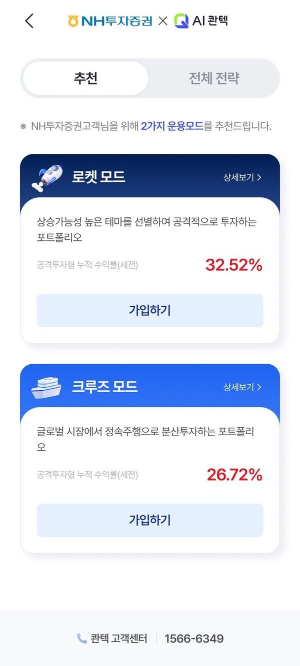 NH투자증권 앱을 이용하는 고객들은 AI 콴텍이 추천해 주는 상품에 가입하거나 자신의 취향과 필요에 맞는 상품을 찾아 가입할 수 있다.