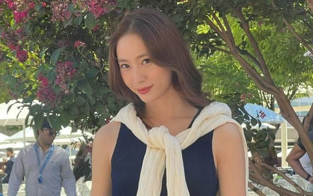 김나영은 기본 핏의 흰 티셔츠에 블랙 슬랙스, 그리고 메쉬 플랫을 심플하고 클래식하게 매치한 뒤, 블루와 네이비 패턴의 스카프를 허리에 둘러 멋스러운 데일리 룩을 연출했어요.