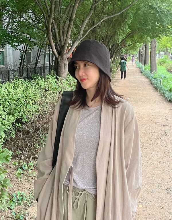 사진 속 황우슬혜는 산책을 즐기고 있다.