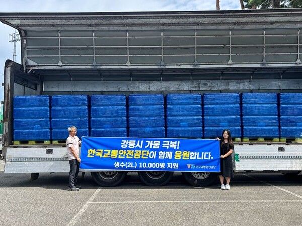 한국교통안전공단(TS)이 극심한 가뭄으로 생활용수 부족을 겪고 있는 강원도 강릉시에 생수(2L) 1만병을 긴급 지원했다고 9일 밝혔다.