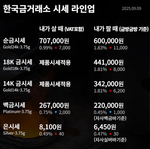 순금(24K) : 매입가 70만 7000원 / 매도가 60만 원