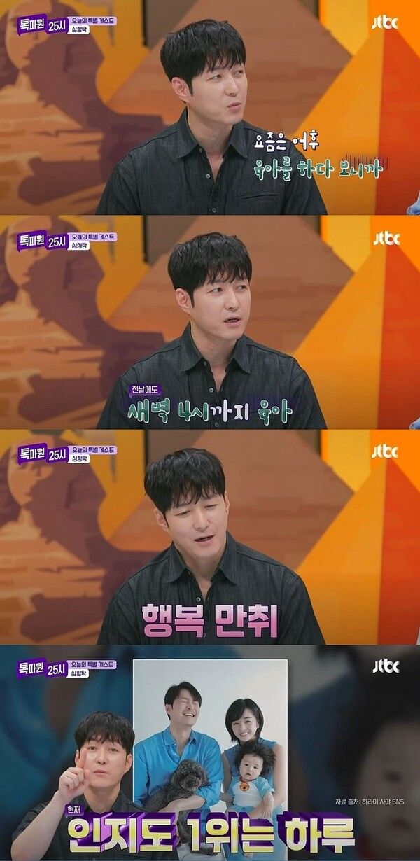 배우 심형탁이 육아 때문에 새벽 4시까지 잠을 못 잤다고 말했다.