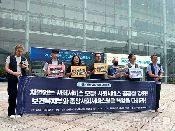 집회가 이뤄진 건물은 이날부터 10일까지 보건복지부와 중앙사회서비스원이 주최한 '2025년 대한민국 사회서비스 박람회'가 열리는 곳이다.
