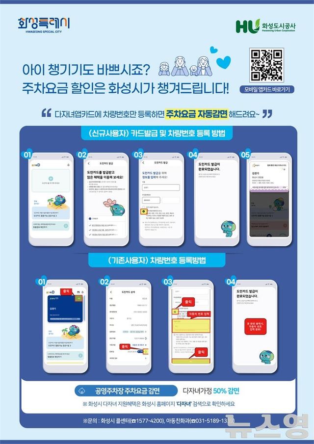 정명근 화성특례시장은 “이번 자동감면제 도입은 작지만 소중한 변화로, 바쁜 일상 속에서 다자녀가정이 체감하는 편리함은 훨씬 클 것”이라며 “다자녀가정이 정책 혜택을 쉽게 누릴 수 있도록 더욱 세심하게 살피겠다”고 말했다.
