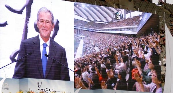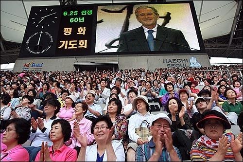 2010년 여의도 순복음교회 기도회 연설을 위해 방한한