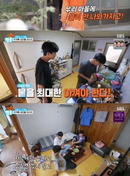 소모도에서 지하수를 물탱크에 저장해서 쓰는데, 비가 오지 않아 물이 부족해진 상황이었던 것. 이에 임태훈은 "빨래도 하면 안되겠다. 설거지도 몰아서 하고, 화장실 물이 안 내려갈 수도 있다. 물을 쓰다가 끊길 수도 있으니까 아껴써야겠다"고 말하며 웃었다.