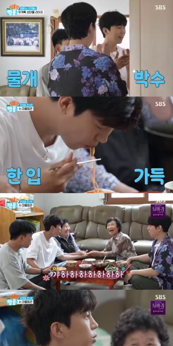 9일 방송된 SBS 예능 프로그램 '섬총각 영웅'에서는 전남 완도 소모도에서 일상을 보내는 임영웅, 궤도, 임태훈(철가방 요리사)의 모습이 그려졌다.
