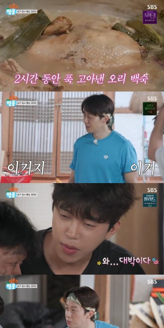 요리를 하는 중에도 그쳤던 비가 쏟아져 모두를 당황하게 만들었다. 임태훈은 폭우 속에서도 오리 백숙을 완성해냈다. 2시간동안 푹 끓인 오리백숙은 어마어마한 비주얼을 자랑했다.