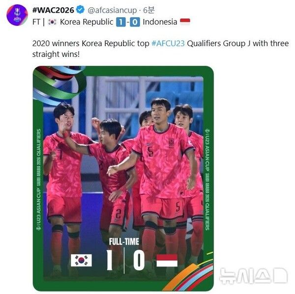 이민성호가 2026 아시아축구연맹(AFC) 23세 이하(U-23) 아시안컵 예선 전승을 거두고 본선 진출을 확정했다.