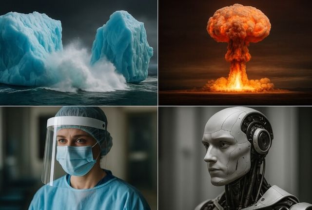 ▲ 지구에 위협이 되는 기후위기, 핵전쟁,바이러스, AI등 이미지