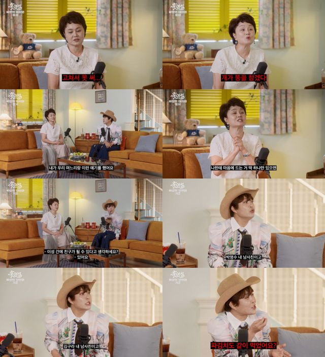 남녀사이에 친구가 가능하냐는 질문에 이경실과 조혜련은 동시에 “있다”고 답했다. 조혜련은 “김구라와 박명수는 내 남사친이다. 이성간의 친구는 가능한 일”이라고 자신 있게 말했다. 다만 “남사친과 둘이서 좋은 데 가서 밥을 먹거나 하는 일은 없다. 사실 그들이 먹자고 안 한다”고 선을 그었다. “포케 정도는 괜찮고 파전을 단둘이 먹는 안 된다. 단, 막걸리에 파김치까지 먹으면 괜찮다”는 디테일까지 설명해 웃음을 주기도 했다.