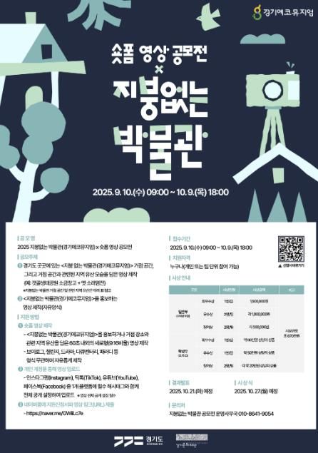 이번 공모전은 9월 10일부터 10월 9일까지 진행되며, 2025년 지붕없는 박물관을 소개하는 숏폼 영상을 모집한다. 공모 주제는 ‘지붕없는 박물관의 거점 장소와 지역유산 이야기’ 또는 ‘지붕없는 박물관(경기에코뮤지엄) 소개’로, 누구나 개인 또는 팀 단위로 자유롭게 참여할 수 있다.