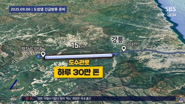 지난 6일 보도된 도암댐 도수관로 관련 뉴스 / 유튜브 'SBS 뉴스' 보도 화면 캡처
