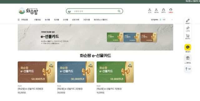 | ▲ 화순팜 e-선물카드 카테고리 화면 |