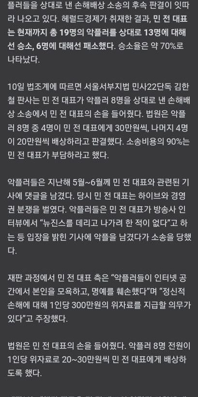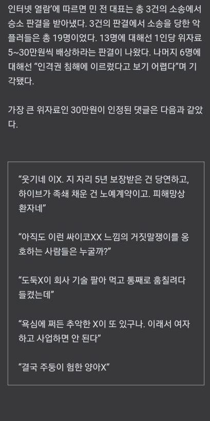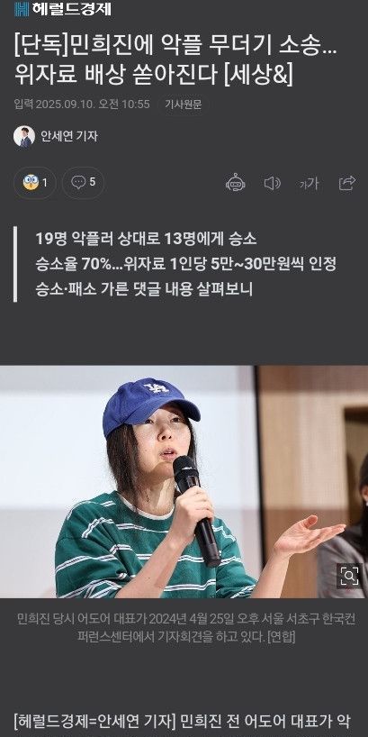 민희진에 악플 무더기 소송…위자료 배상 쏟아진다