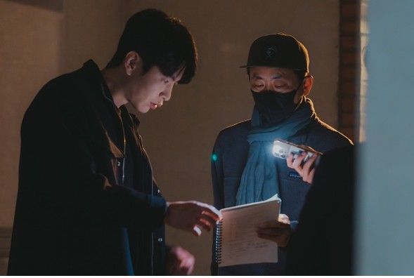 이민기는 정의감이 투철한 형사 본능으로 수사에 고군분투하는 형사 반지훈 역에 몰입해 언제 어디서나 열의를 불태웠다. 조명 없는 어두운 현장에서 이민기는 박준우 감독과 핸드폰 불빛에 대본을 비춰보며 장면에 대한 의논을 거듭해 귀감을 자아냈다.