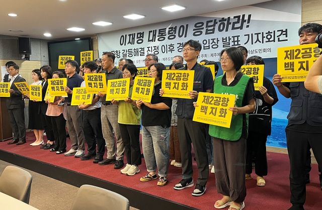 제주제2공항강행저지비상도민회의(이하 도민회의)는 10일 오전 제주도의회 도민카페에서 기자회견을 열고 “이재명 대통령은 제주제2공항 갈등 해결을 위해 직접 나서라”고 요구했다.