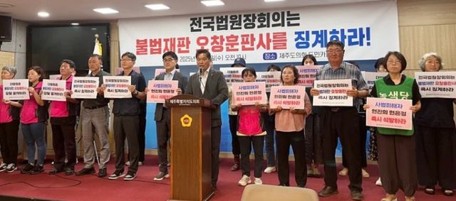 이어 “A판사의 불법재판으로 인해 제주도민 두 여성과 가족, 친구, 동료들의 가슴에는 시퍼런 멍이 들었다”며 “사법피해자 2명을 석방하고, 전국법원장회의는 A판사에 대한 징계와 함께 제주도민 재판에서 배제하는 결정을 내려야 한다”고 주장했다.