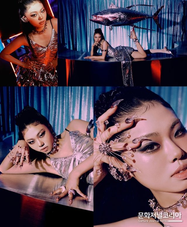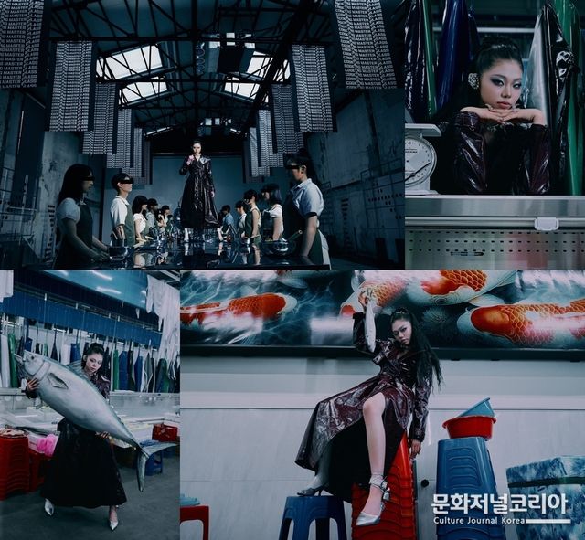 이어 공개된 사진에서는 보다 짙어진 무드가 엿보였다. 실버 포인트 메이크업을 완벽하게 소화한 영빈은 수산시장에서도 위풍당당한 매력을 뽐냈고, 아이스 박스, 플라스틱 의자 등을 활용해 패션 화보를 방불케 하는 대담한 면모까지 드러냈다.