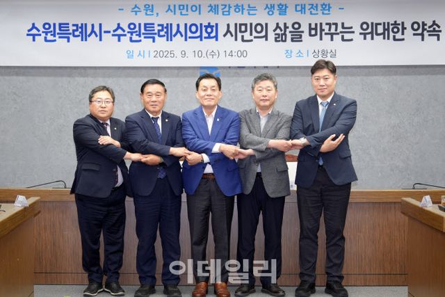 10일 이재준 수원특례시장과 수원특례시의회 이재식 의장·김정렬 부의장, 김동은 더불어민주당 대표의원, 박현수 국민의힘 대표의원은 시민체감정책 추진을 위한 ‘여야정 공동선언’을 발표했다.
