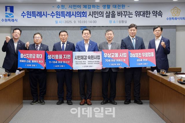 이번 선언에 따라 수원시는 출산지원금 확대 지원을 비롯해 여성청소년 생리용품 지원, 어르신 무상교통, 대상포진 무료 접종 등 4개 정책사업을 신규 추진하게 된다.