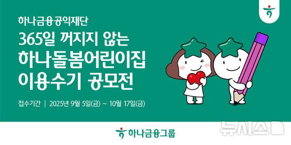 하나금융그룹 '365일 꺼지지 않는 하나돌봄어린이집 이용수기 공모전'을 개최한다고 10일 밝혔다.