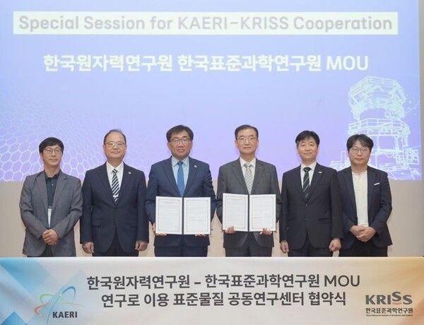 한국표준과학연구원(KRISS)과 한국원자력연구원(KAERI)은 10일 대전컨벤션센터서 열린 국제하나로심포지엄에서 '측정표준기술 개발과 원자력 관련 기술의 융합발전'을 위한 업무협약을 체결했다.