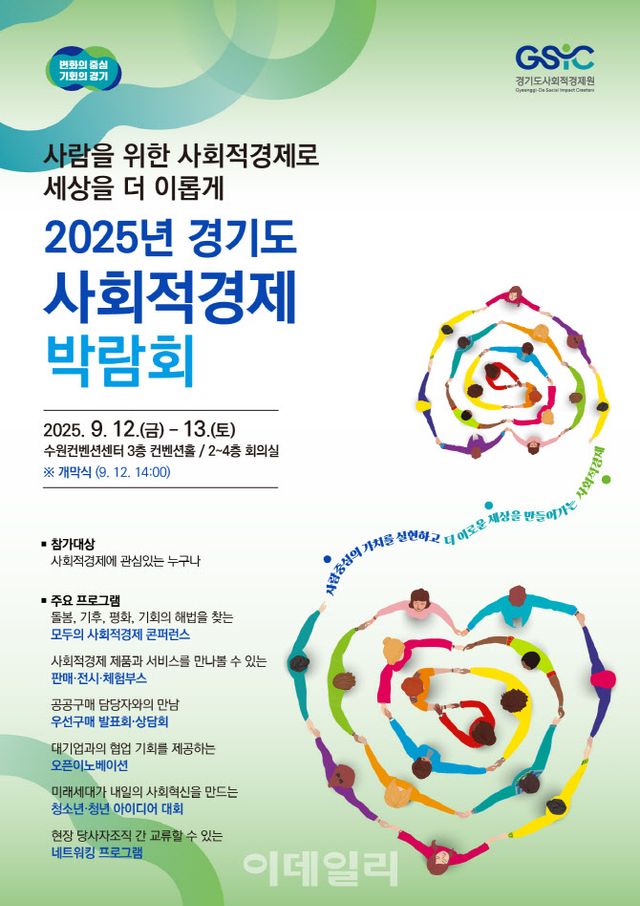 경기도와 경기도사회적경제원이 오는 12~13일 양일간 수원컨벤션센터에서 개최하는 올해 박람회는 ‘사람을 위한 사회적경제로 세상을 더 이롭게!’라는 슬로건 아래 국제 콘퍼런스, 115개 사회적경제조직이 참여하는 전시·판매 부스, 사회 혁신 토크 콘서트, 체험형 이벤트 등 관람객과 함께할 수 있는 행사들로 구성됐다.