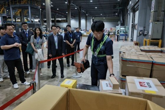 ▲ 최원호 원자력안전위원회 위원장이 9일 인천공항본부세관 특송물류센터를 찾아 수입 화물 방사선 감시 활동을 점검하고 있다.(사진=원자력안전위원회) |
