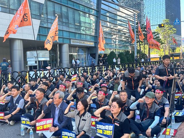 전국사무금융서비스노동조합 전국협동조합본부 조합원들은 10일 오후 2시 서울 서대문구 농협중앙회 본사 앞에서 대규모 집회를 가졌다. 이날 집회에는 전국 178개 농·축협 근로자들이 참석했다. 이들은 노동이 존중받는 농협을 만들기 위한 11가지 핵심 과제 제시와 더불어 축산농협 직원들의 산재사고 예방을 위한 농협중앙회의 대책 마련을 촉구했다. 축산농협은 지역 단위로 운영되는 농협중앙회의 회원 조합으로 소·돼지 등 가축을 사육·관리하고 축산물 유통을 담당하는 실질적인 현장 조직이다.