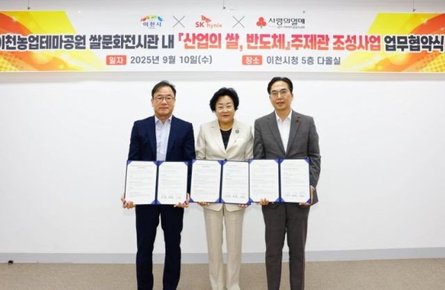 [와이뉴스] 이천시는 9월 10일 이천시청에서 SK하이닉스, 경기사회복지공동모금회와 함께 ‘산업의 쌀, 반도체’ 주제관 조성을 위한 지역사회 상생협력 업무협약(MOU)을 체결했다.